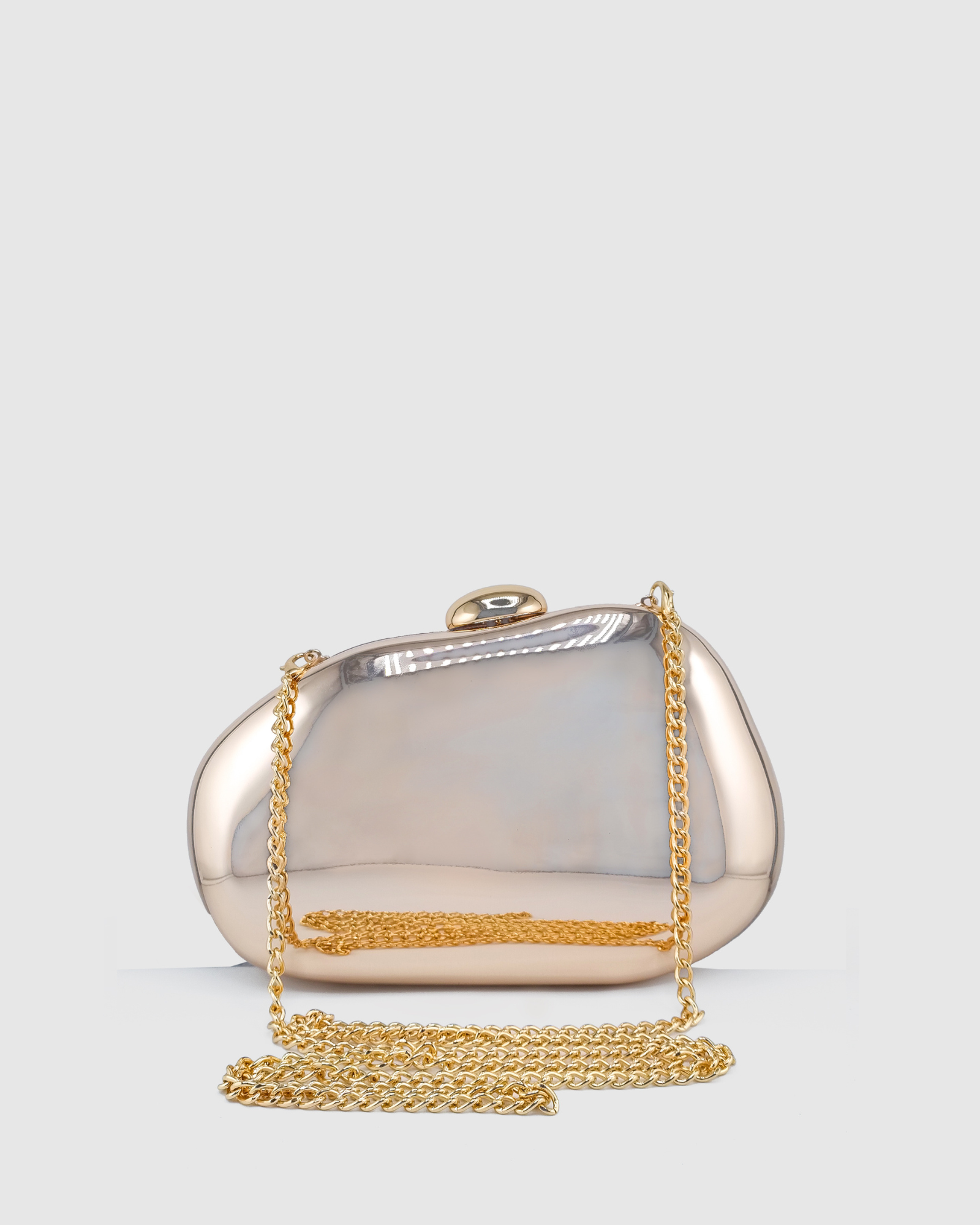 With its high-shine reflective finish, this gold evening clutch adds instant luxury and elevates any outfit. Both bold and elegant, the Clara Clutch is a must-have for those who love standout accessories with contemporary design.