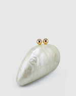 Elevate your evening style with the Eleanor Clutch in Cream, a timeless accessory that exudes modern elegance. This hardcase clutch features a stunning cream ivory mother of pearl-inspired design crafted in an asymmetrical round silhouette, making it a standout piece for any special occasion.