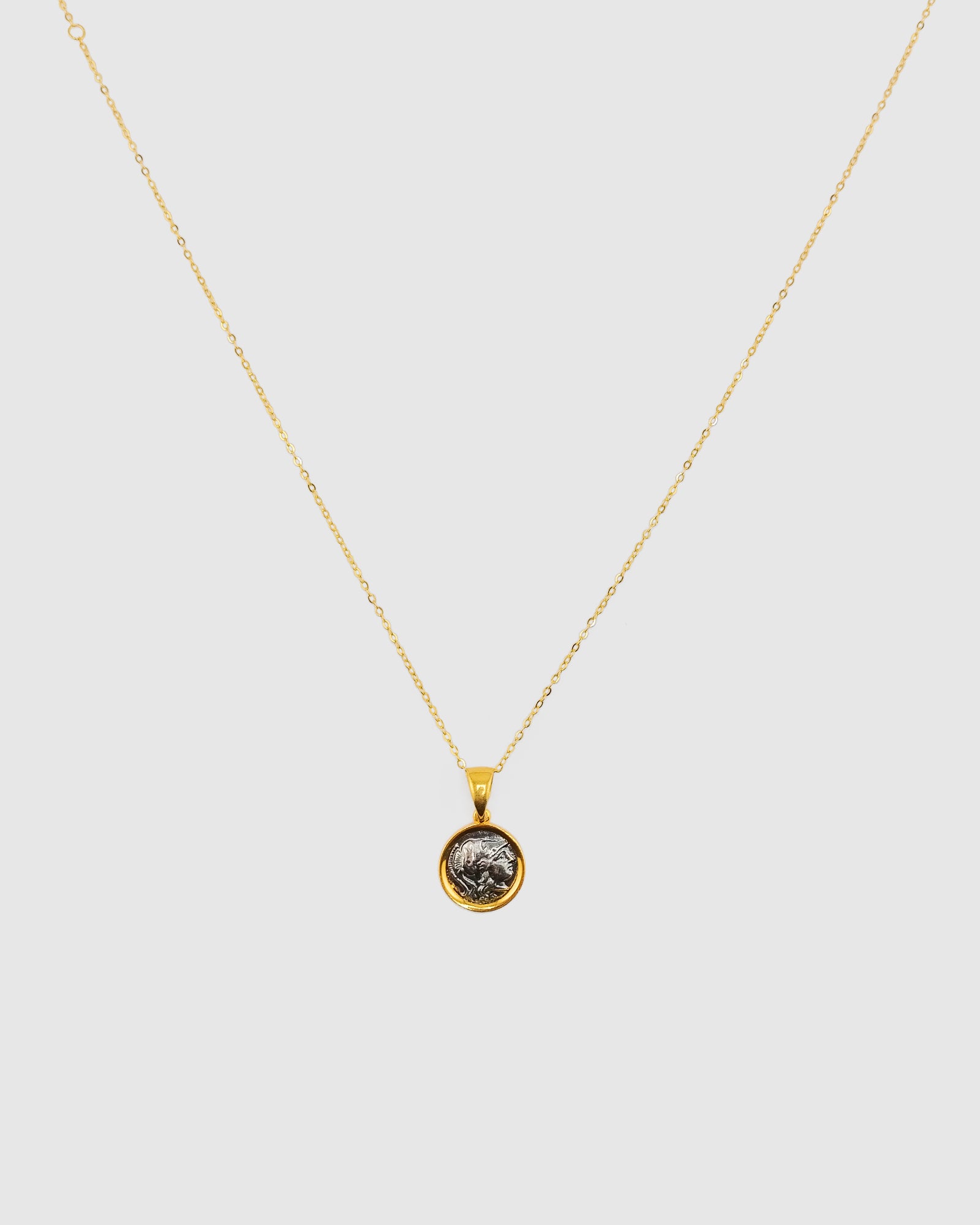 Timeless elegance meets storied symbolism in the Vaya Pendant Necklace. Featuring a delicate chain and a striking coin pendant etched with ancient Roman-inspired symbols, this piece channels the spirit of old-world charm through a modern minimalist lens. It’s the perfect everyday necklace with a touch of historical romance.