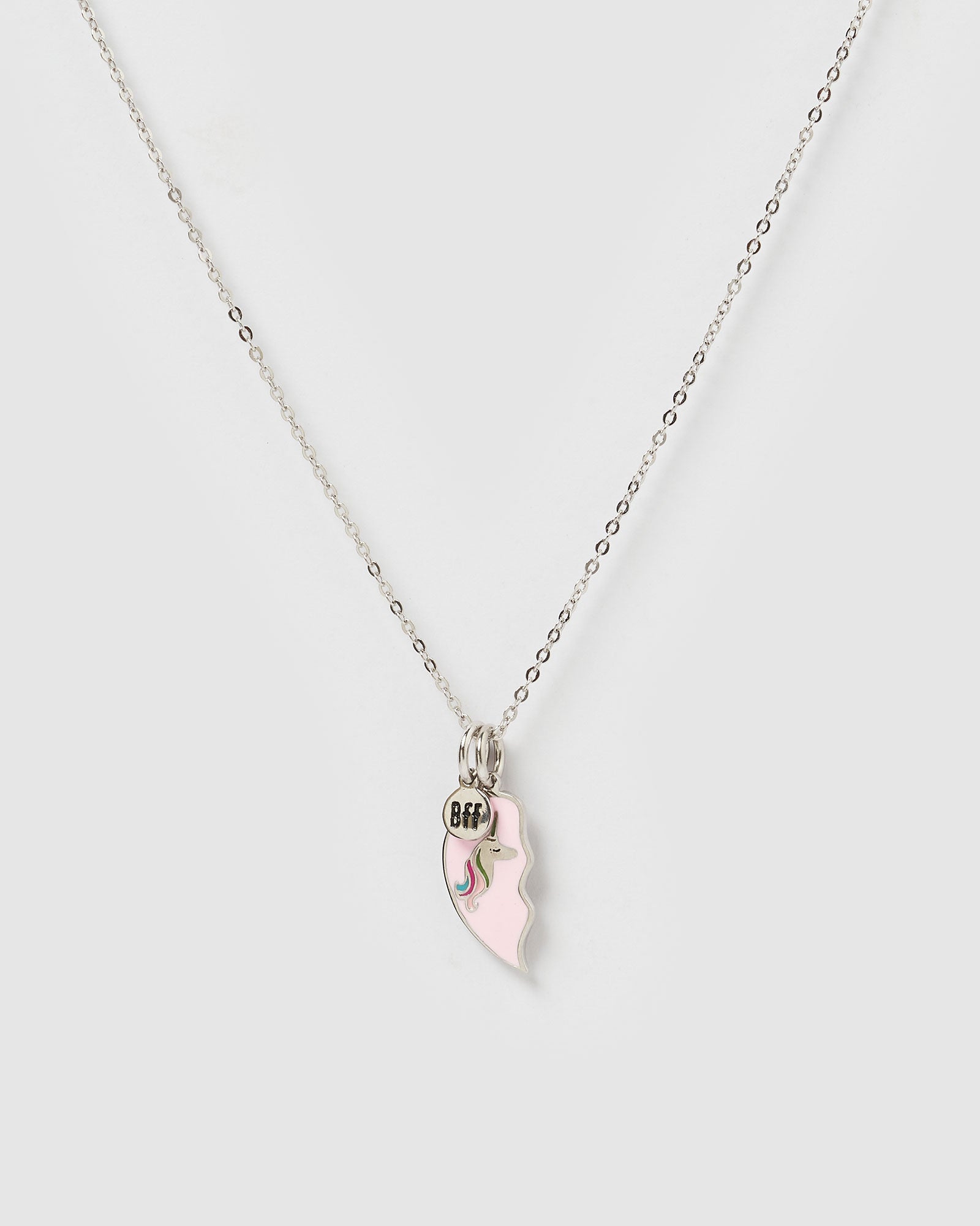 The Izoa Kids BFF Necklace Sterling Silver will add a touch of excitement to every look, from casual weekends to special occasions. Featuring half a heart with a unicorn centre, this necklace will fill any girls eyes with love. Made from sterling silver