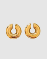 The Cleo Ear Cuff set in Gold. Crafted from high-quality stainless steel and plated with 18k gold, this ear cuff is designed to add a touch of sophistication to your everyday look. The soft pattern creates a dynamic and fluid aesthetic, making it a standout accessory that catches the light and adds movement to your style.