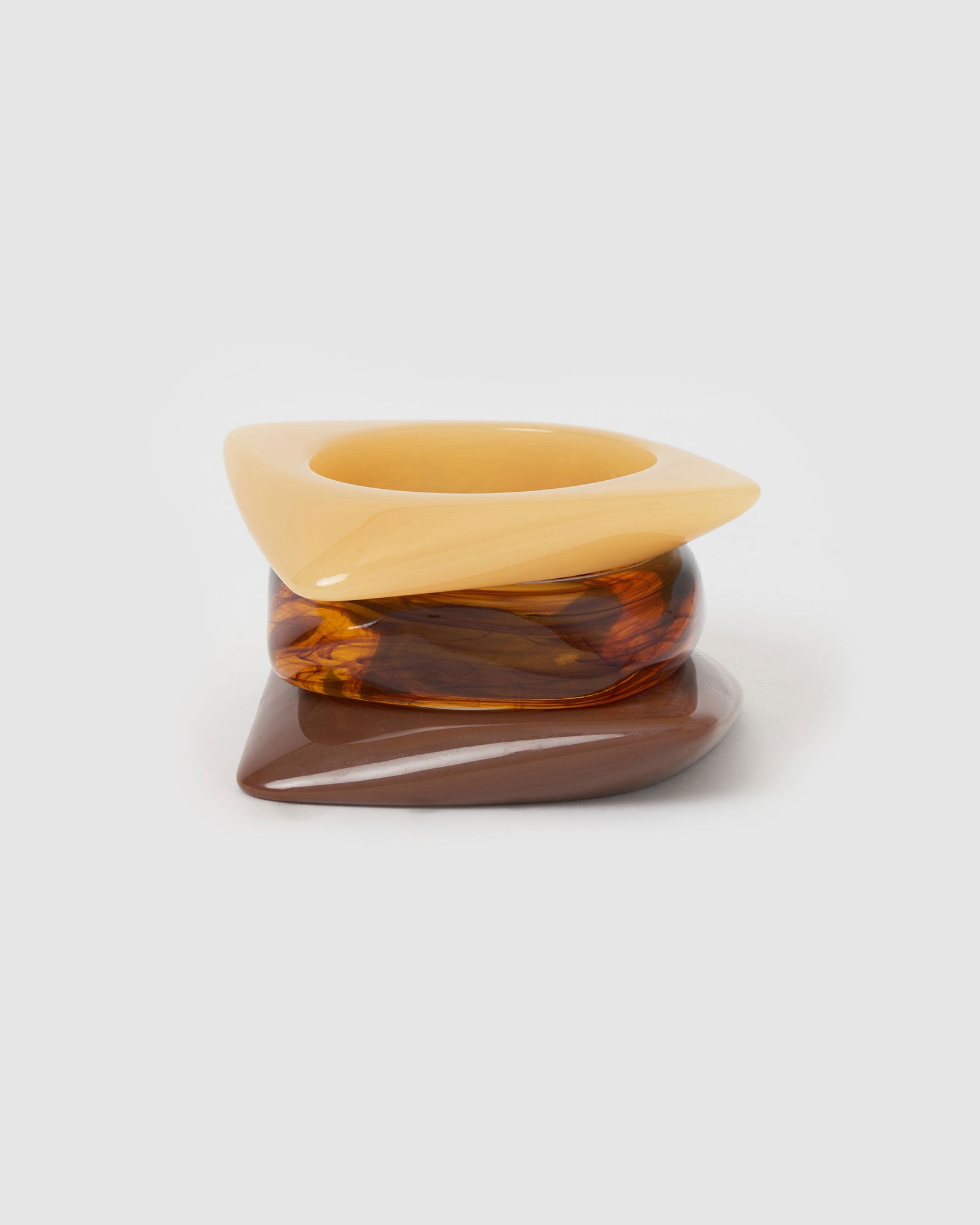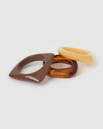 The new Lilo Bangle Stack is a must have! These chunky marble bangles suitable for all wrists and occasions. Bold colours and soft marble patterns and geometrical shapes will add an element of sophistication to your casual look or layered nicely with plain gold bracelets for a night on the town. Whether you're dressing up for a special occasion or adding a touch of sophistication to your everyday look, these bangles are your go-to choice.