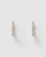 Simple and elegant are the Rae Small Huggie Earrings in Silver. Sparkling clear cubic zirconia half set in these petite sterling silver hoops are designed to hug your ear. Perfect piece for layering or own its own.