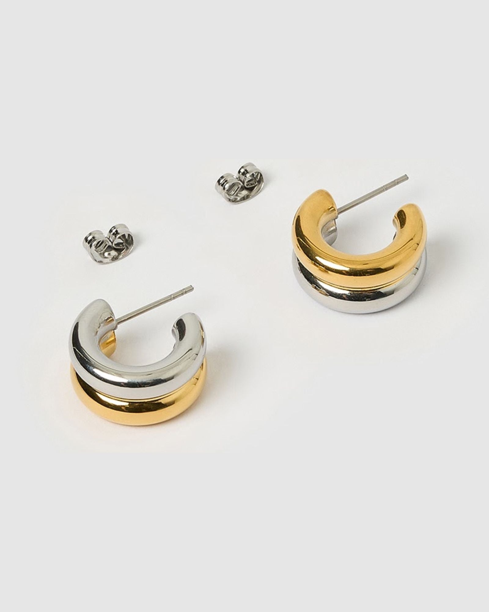 Make a striking statement with the Imara Hoop Earrings Gold/Silver by IZOA. These bold hoops embody contemporary Australian design while delivering show-stopping style for the fashion-forward woman. The double hoop with mix metals is designed for everyone making a statement.