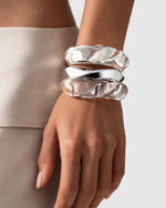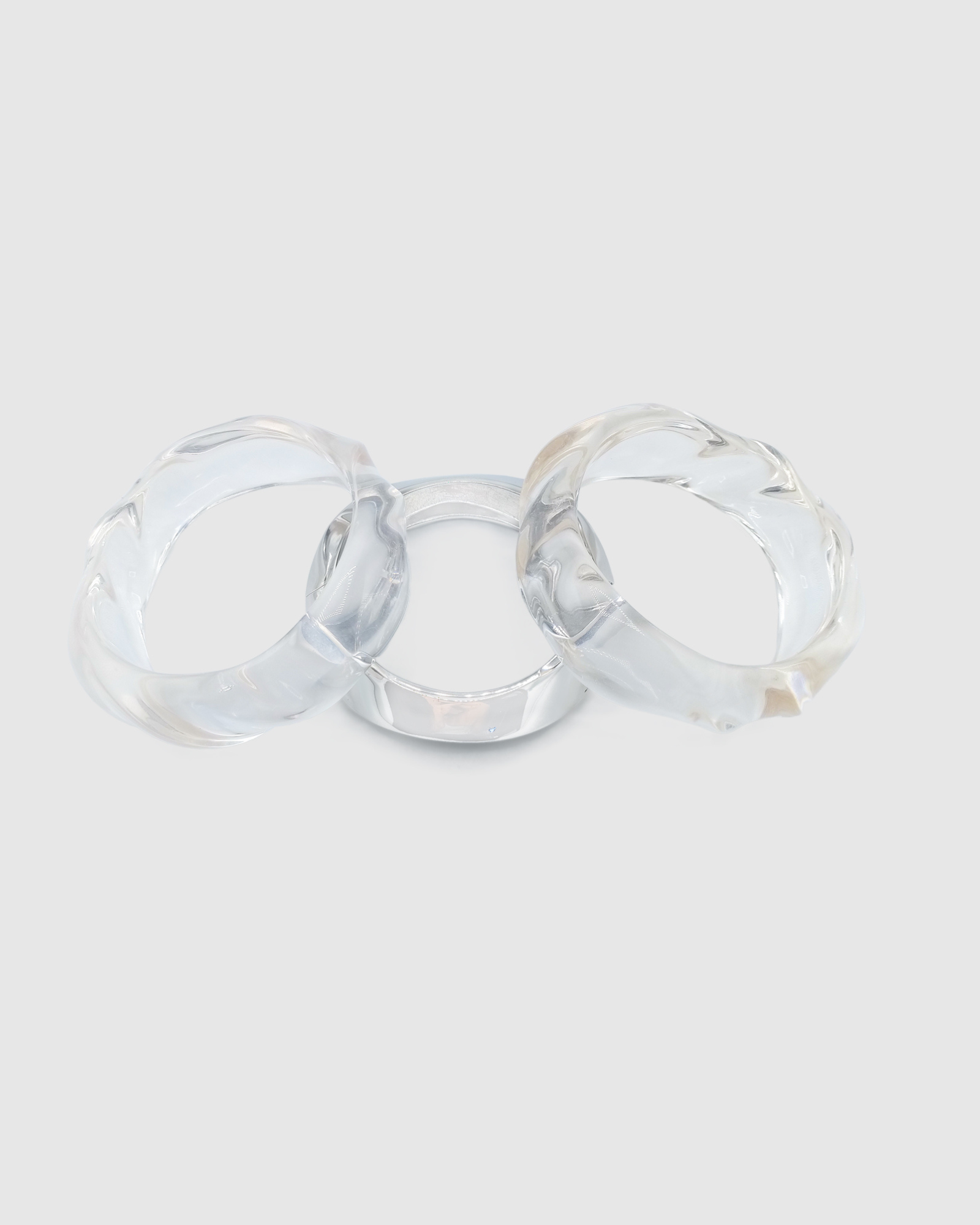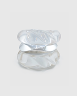 This curated set features two crystal-clear acrylic bangles paired with our iconic Elva Bangle in Silver, creating a versatile stack that balances contemporary minimalism with timeless elegance. Wear all three together for a bold, layered look, or style each piece separately to suit your mood.