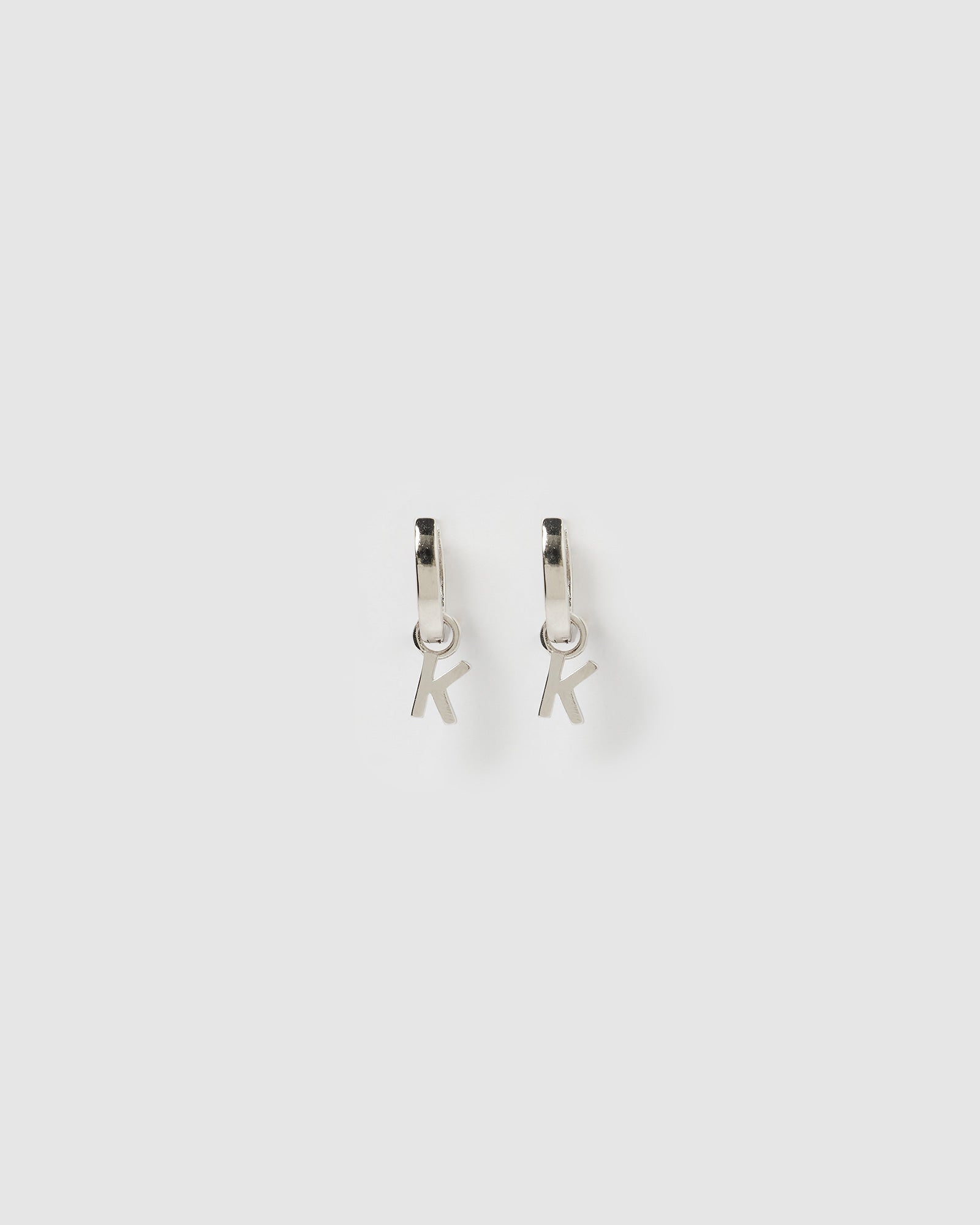 Izoa Alphabet Letter K Huggie Earrings Silver