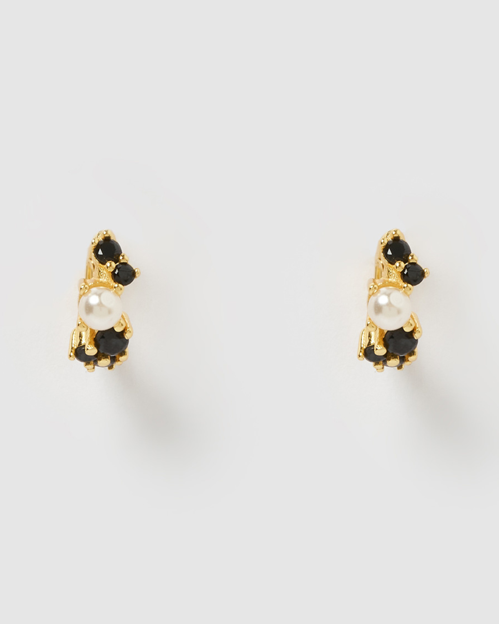 The Carina Huggie in Gold Black is a mini style huggie. The thin structure with cubic zirconias and pearls added into the huggie adds a sense of edge to any look. A simple accessory making this the perfect statement piece.