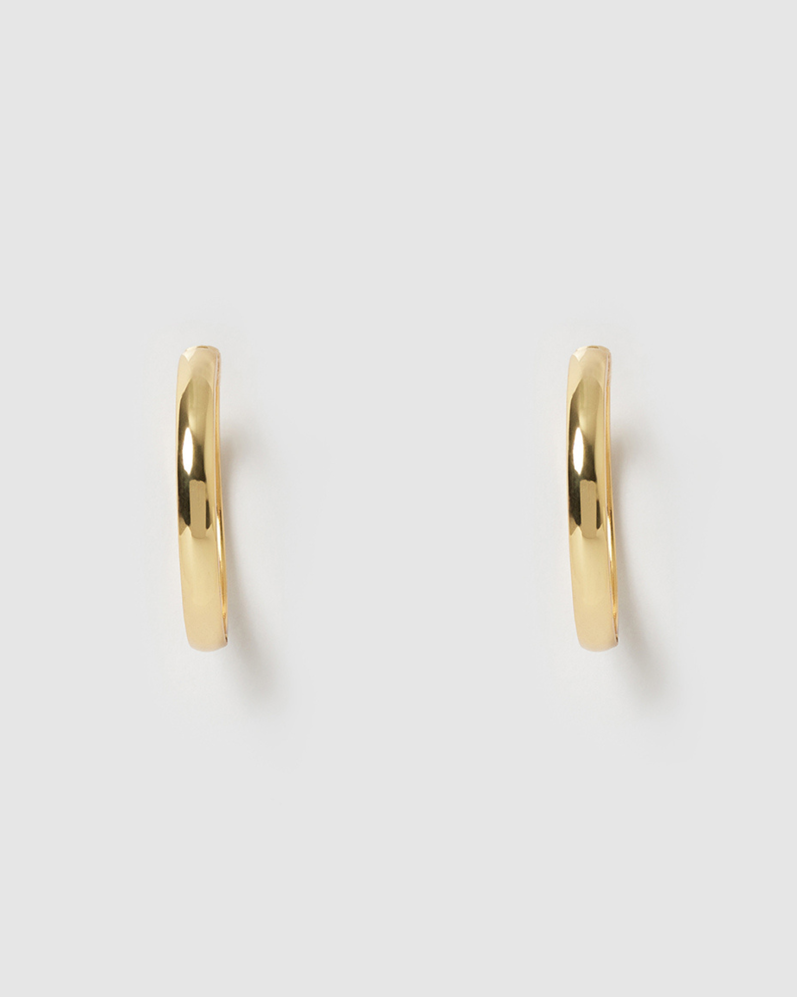 Shop hoop style earrings online at Izoa. Our Midnight Hoop Earrings in Gold are perfect for any occasion. These smooth finished earrings can be worn everyday and paired with similar style huggies for a layered textural look.