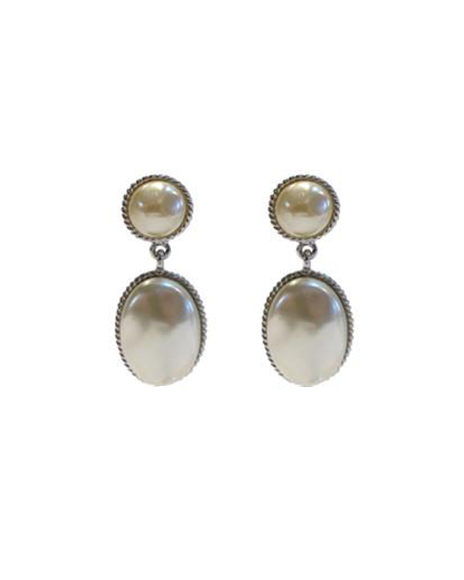 The earrings are rhodium plated with half pearl detail. They are hand crafted and secured by a butterfly clasp. The earrings are lightweight and elegant for daytime and special occasions.
