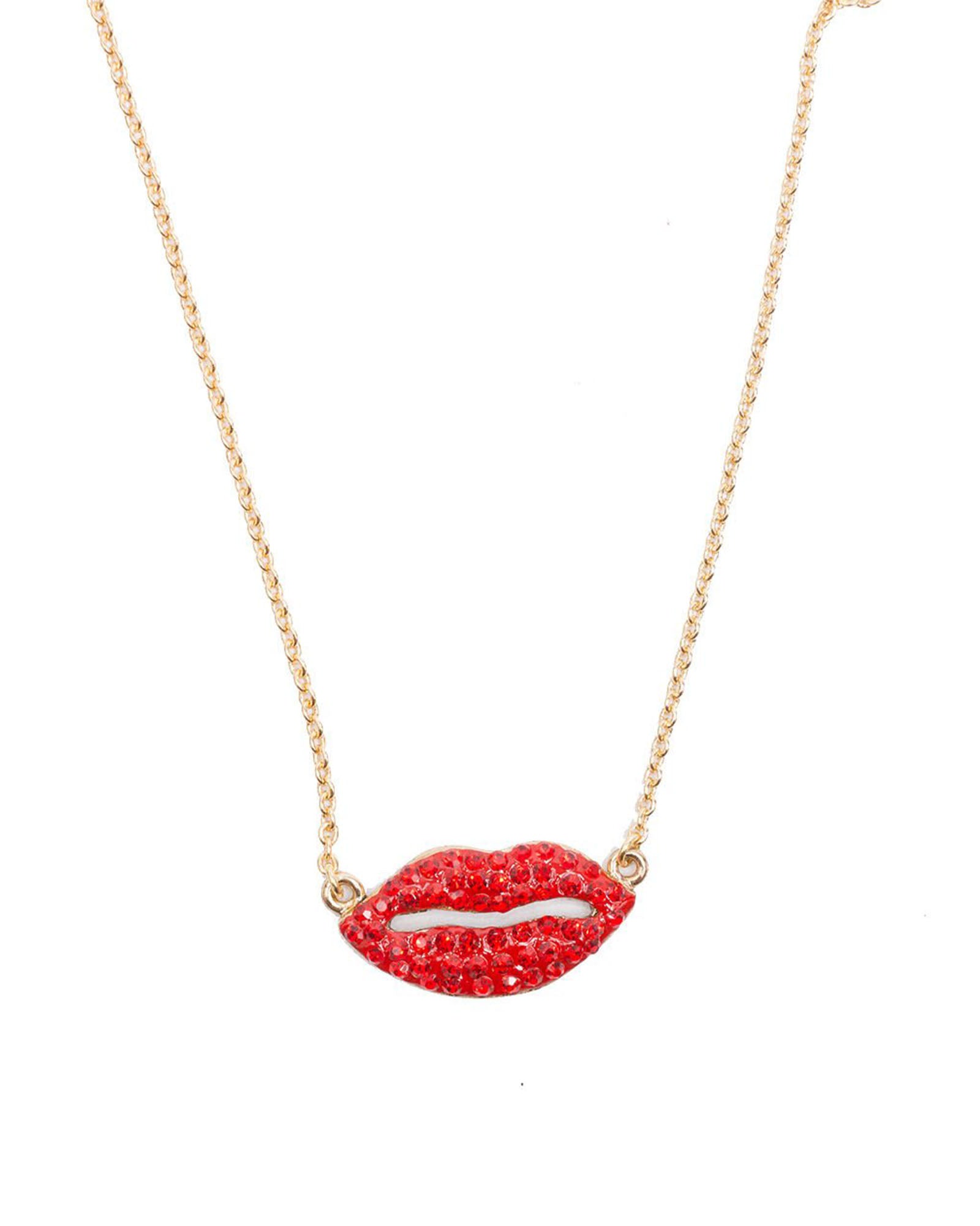Izoa 18k gold plated lips pendant necklace adorned red crystals .