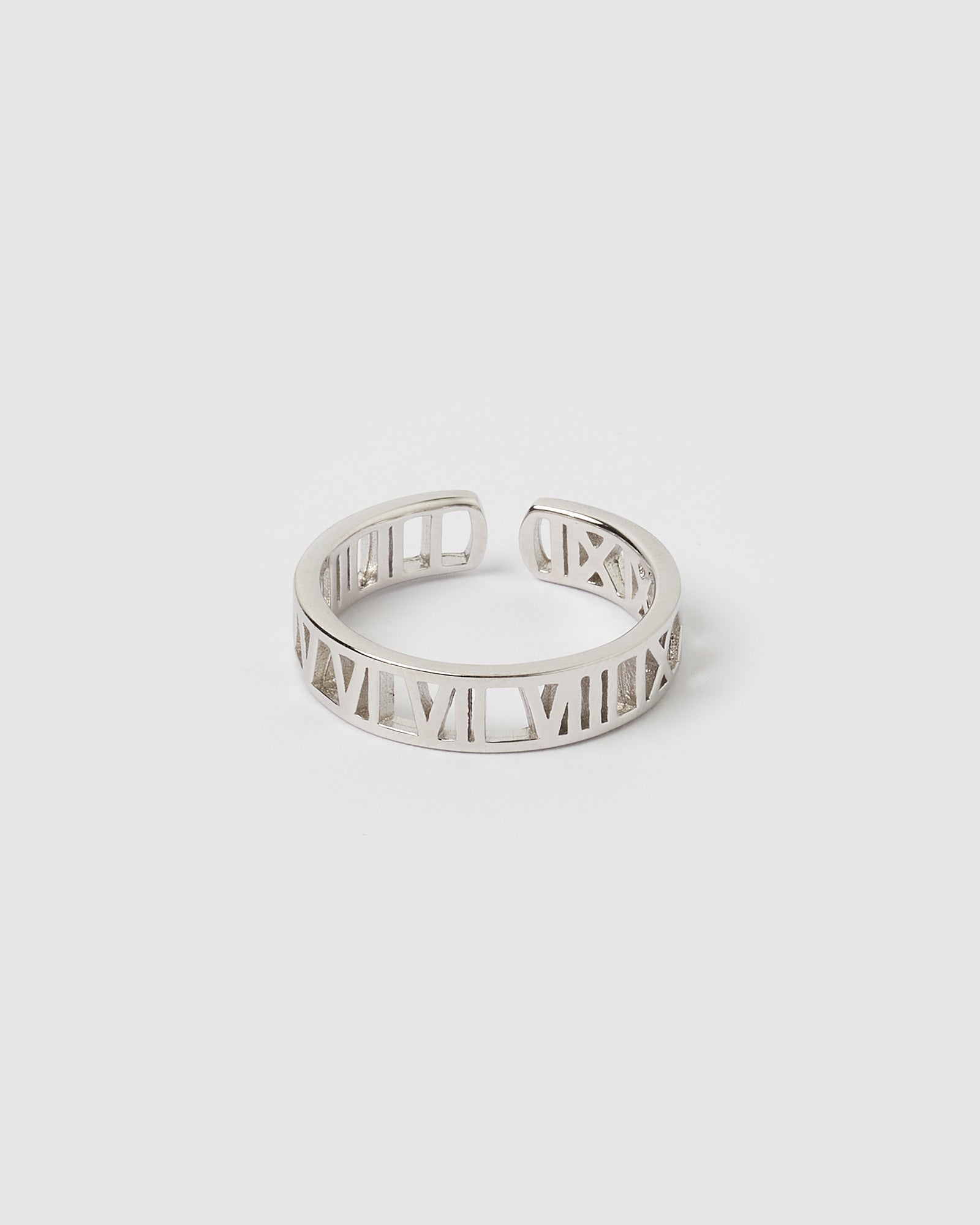 The Roman Ring Silver is crafted in a roman numeral design. This sterling silver adjustable ring will be a great addition to your collection and perfect for all.