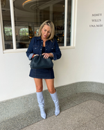 The Izoa Vincenza Woven Bag in Navy combines sophisticated style with practical functionality. This versatile leather handbag showcases an intricate woven construction that adds texture and visual interest to any outfit.