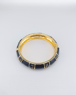 Elevate your style with the Izoa Audrey Bangle, a statement piece that channels classic glamour with a modern edge. Crafted from durable brass and finished in luxurious 18k gold plating and black enamel, this bangle features a soft curved design and black enamel patterns that adds depth and sophistication to any outfit.