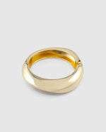 Elevate your style with the Izoa Elva Bangle in Gold, a statement piece that channels classic glamour with a modern edge. Crafted from durable stainless steel and 18k gold plating, this cuff features a soft curved wave pattern that adds depth and sophistication to any outfit.