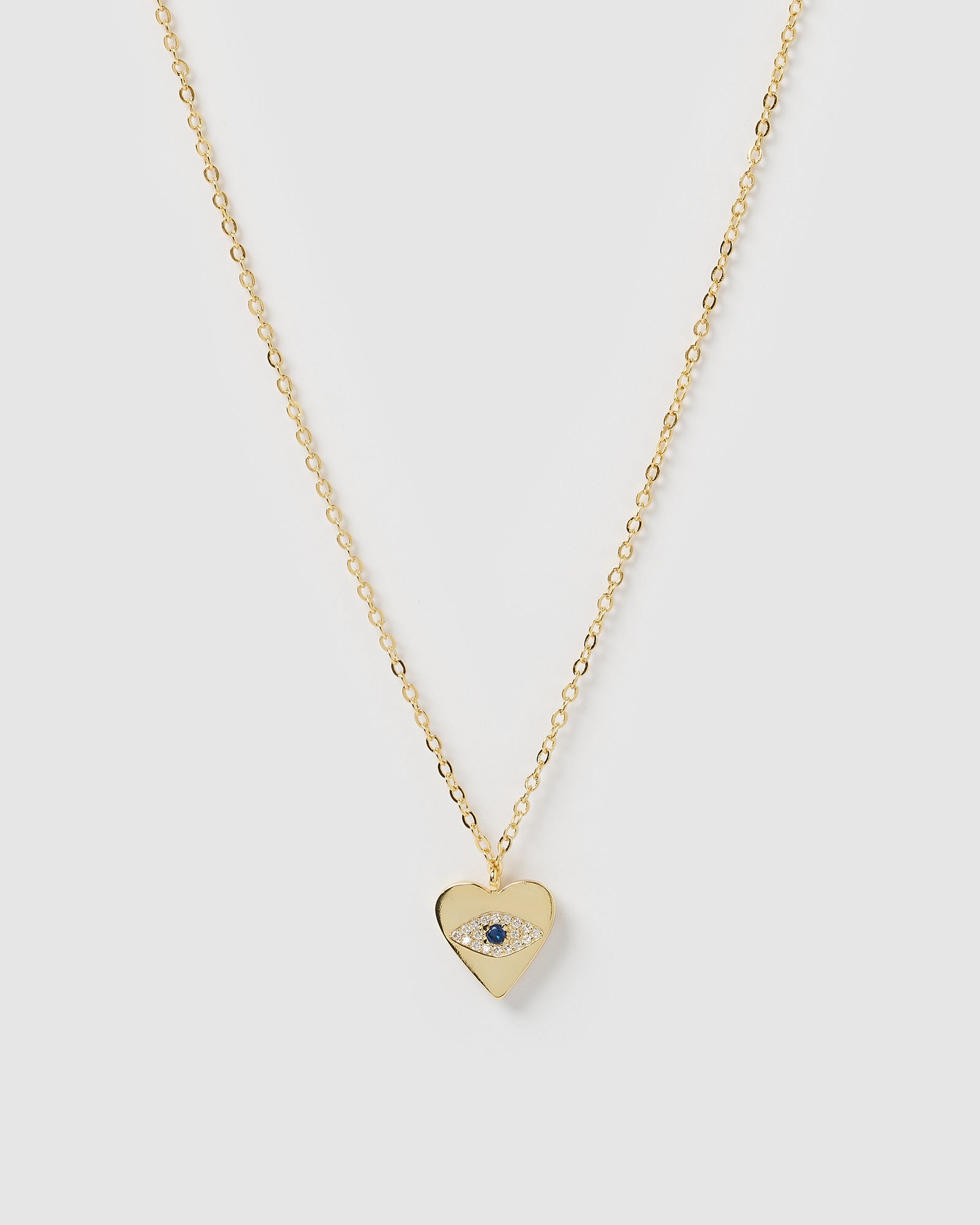 Izoa Emilia Evil Eye Heart Pendant Necklace Gold Crystal