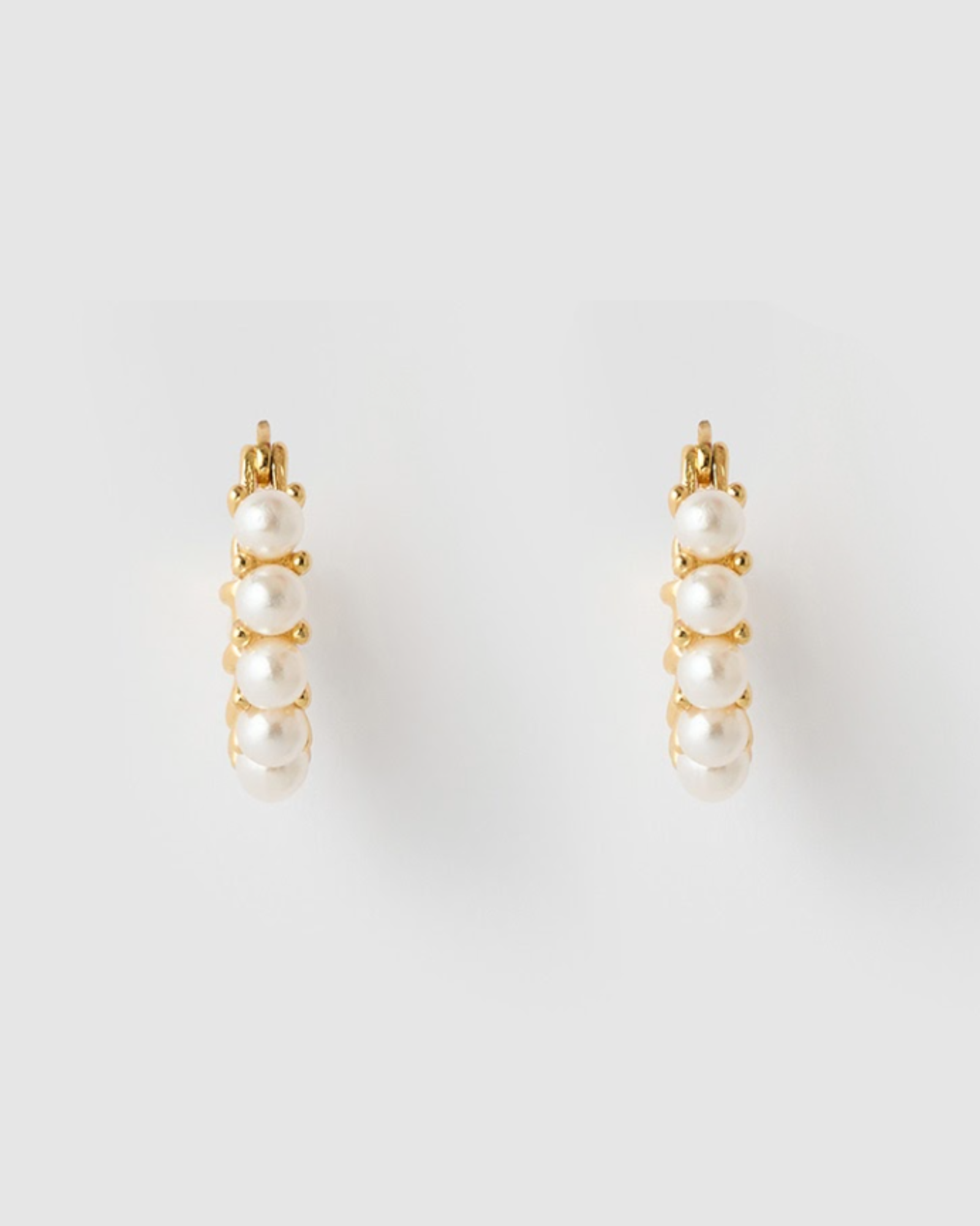 The Adeline Huggie in Gold Pearl is a mini style huggie. The thin structure with delicate pearls added into the huggie adds a sense of edge to any look. A simple accessory making this the perfect statement piece. Featuring genuine freshwater pearls, these earrings offer a natural luster that catches the light beautifully.