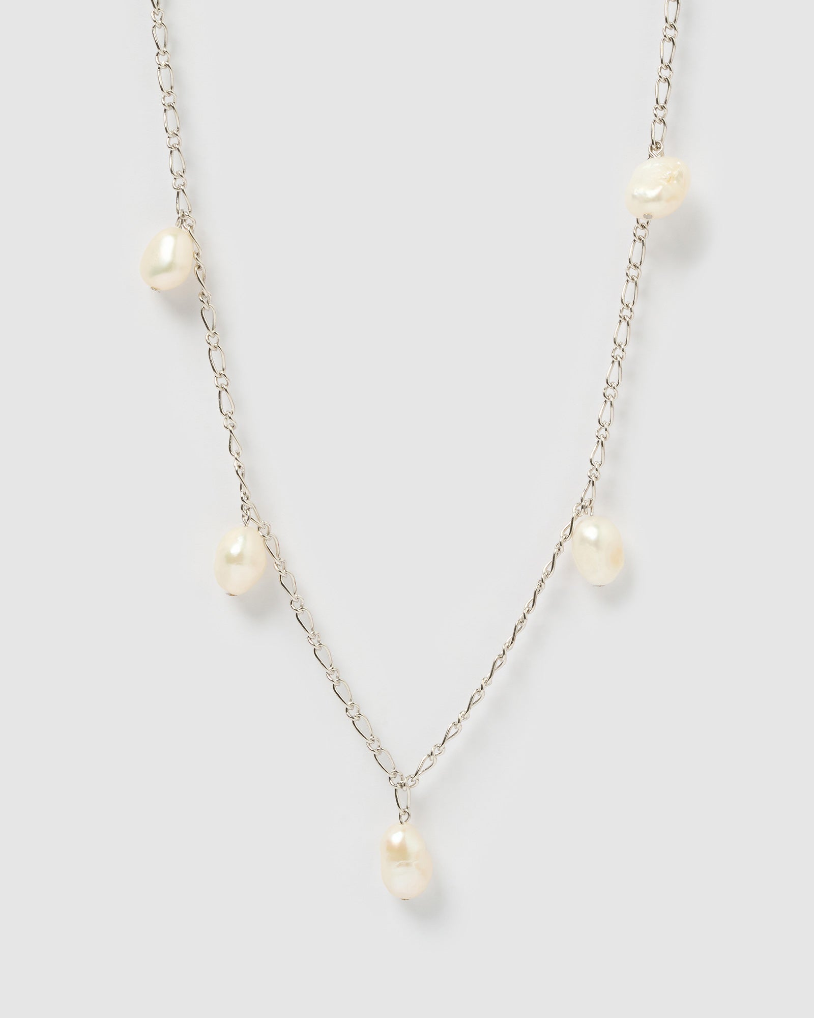 Izoa Anjelica Freshwater Pearl Necklace Silver