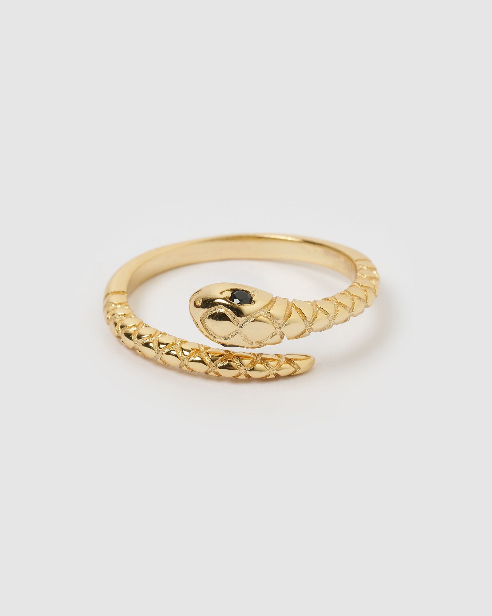 Shop our Izoa Ebony Snake Ring Gold. The statement ring can be adjusted to fit any ring size. A great piece for everyday and layered looks.