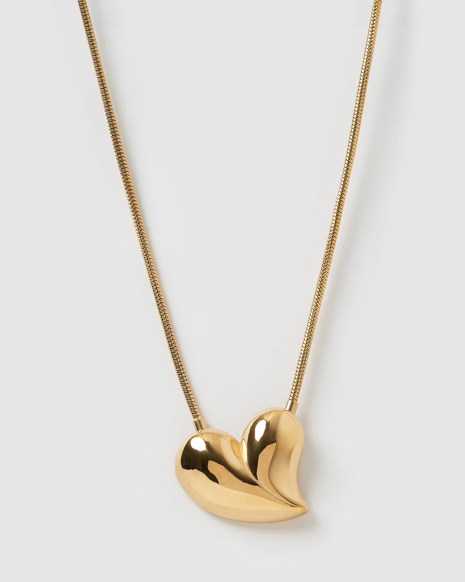 Shop the Layla Heart Necklace in Gold. This beautiful heart shaped pendant features a playful curve on the tail end. Pair this special piece with the matching Layla stud earrings for a stylish everyday look.