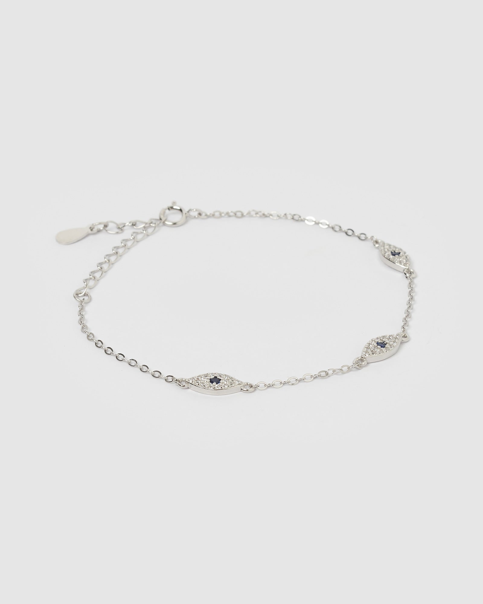 Shop our Jordana Eye Bracelet in Silver for the perfect addition to your everyday accessories. This petite style chain bracelet with the eye all around it is easily layered upon for a stacked look, featuring a cubic zirconia embellished evil eye and subtle multicolour detailing for a touch of shine.