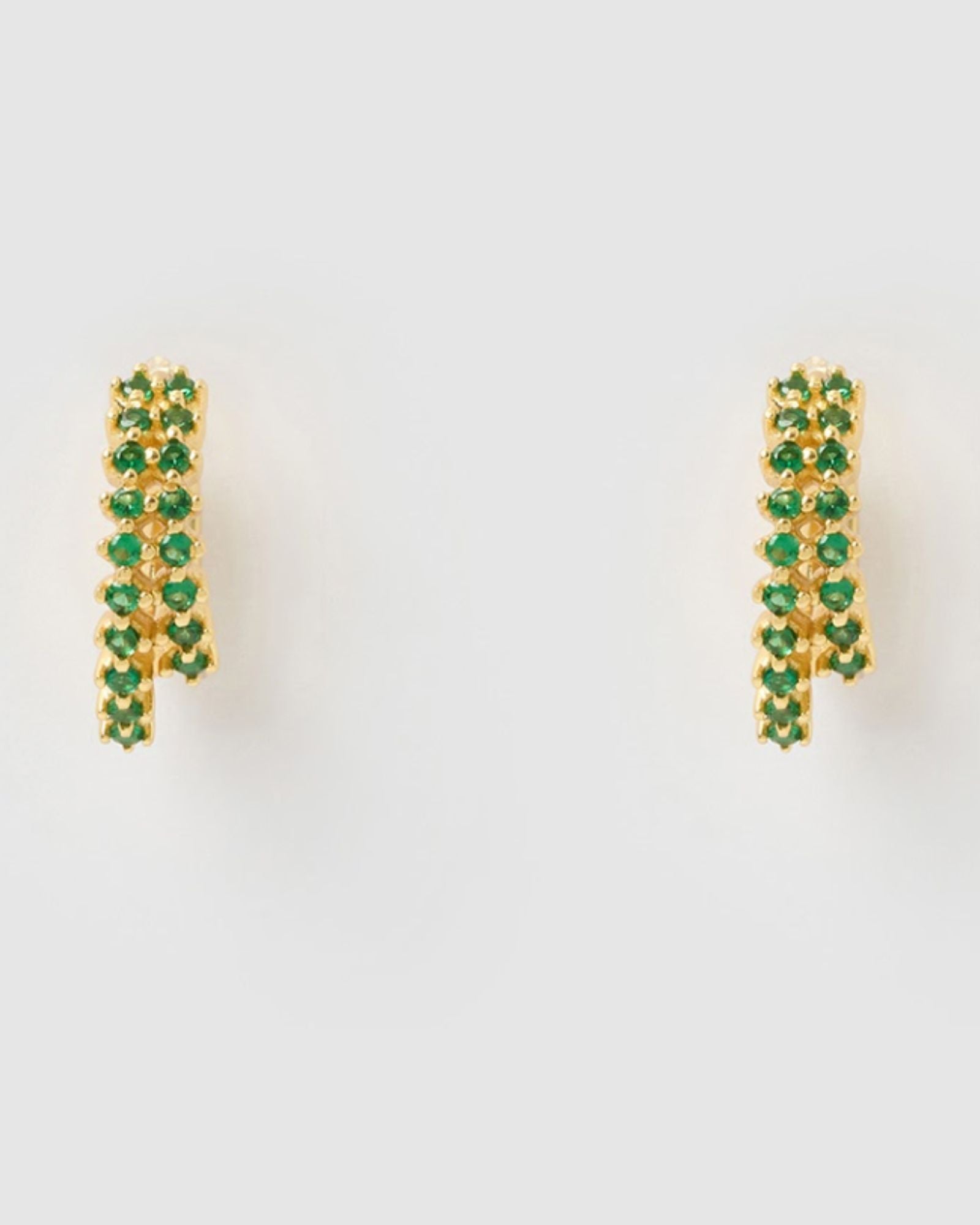 Make a statement with your style and embrace the timeless allure of gold with our Monique Huggies featuring green cubic zirconias in a cross pattern. These huggie earrings are the perfect blend of sophistication and versatility. These gemstone huggie earrings are a simplistic yet ravishing pair of earrings that you're set to fall in love with.