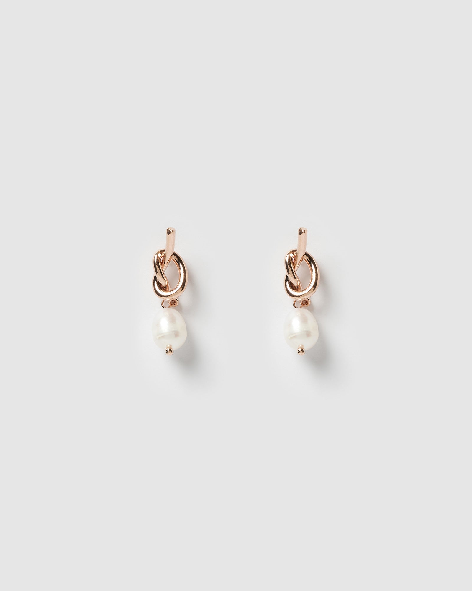 Izoa Tie The Knot Earrings Rose Gold Freshwater Pearl