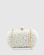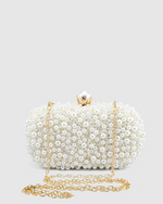 Make a statement with the Cinderella Clutch in Pearl – a modern blend of elegance and edge. This standout piece features a clasp closures and a sleek chain strap. The adjustable gold chain strap offers versatile styling – wear it as a shoulder bag or crossbody. Finished with radiant pearl, the Cinderella is perfect for weddings, parties, or polished evening looks.
