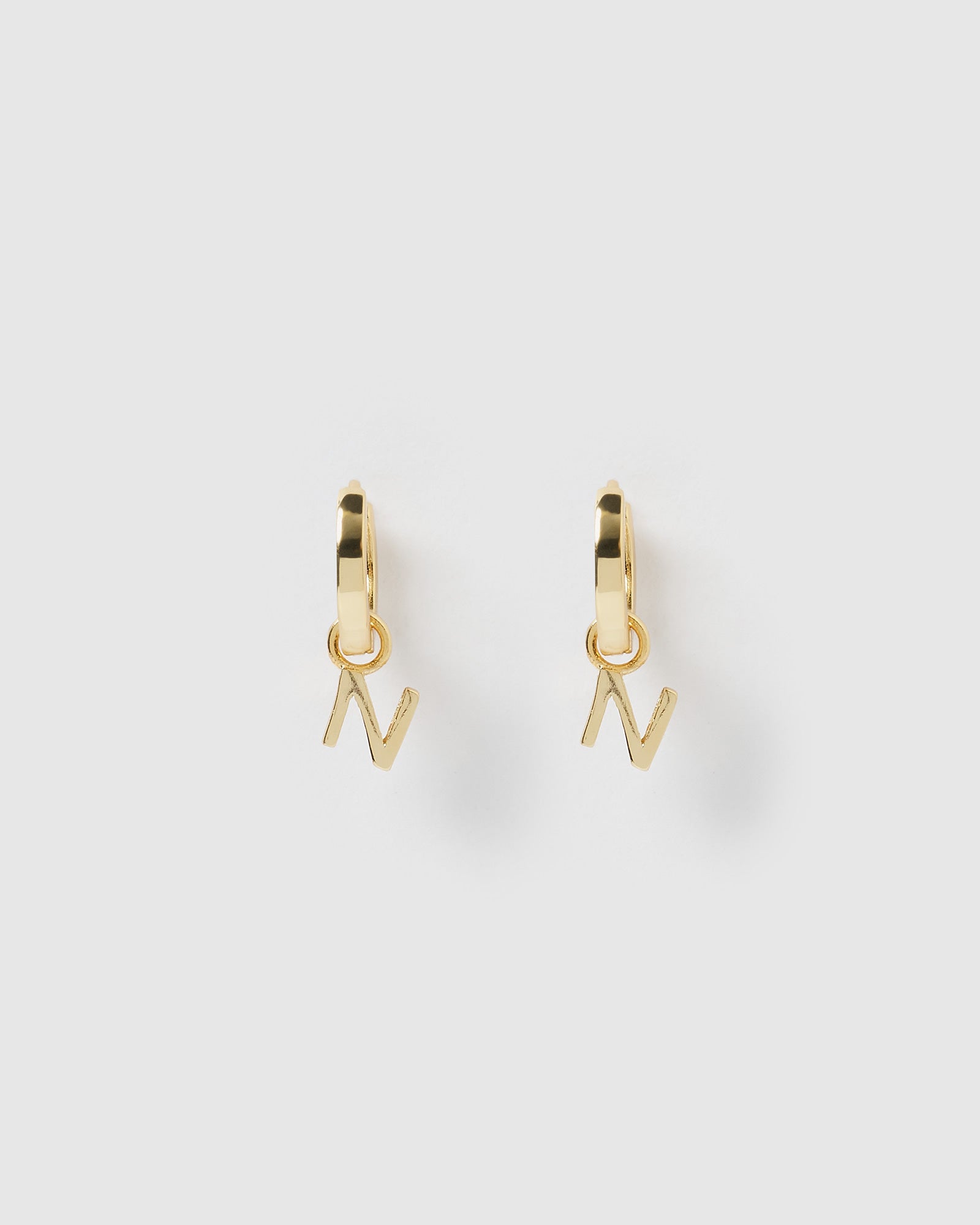 Izoa Alphabet Letter N Huggie Earrings Gold